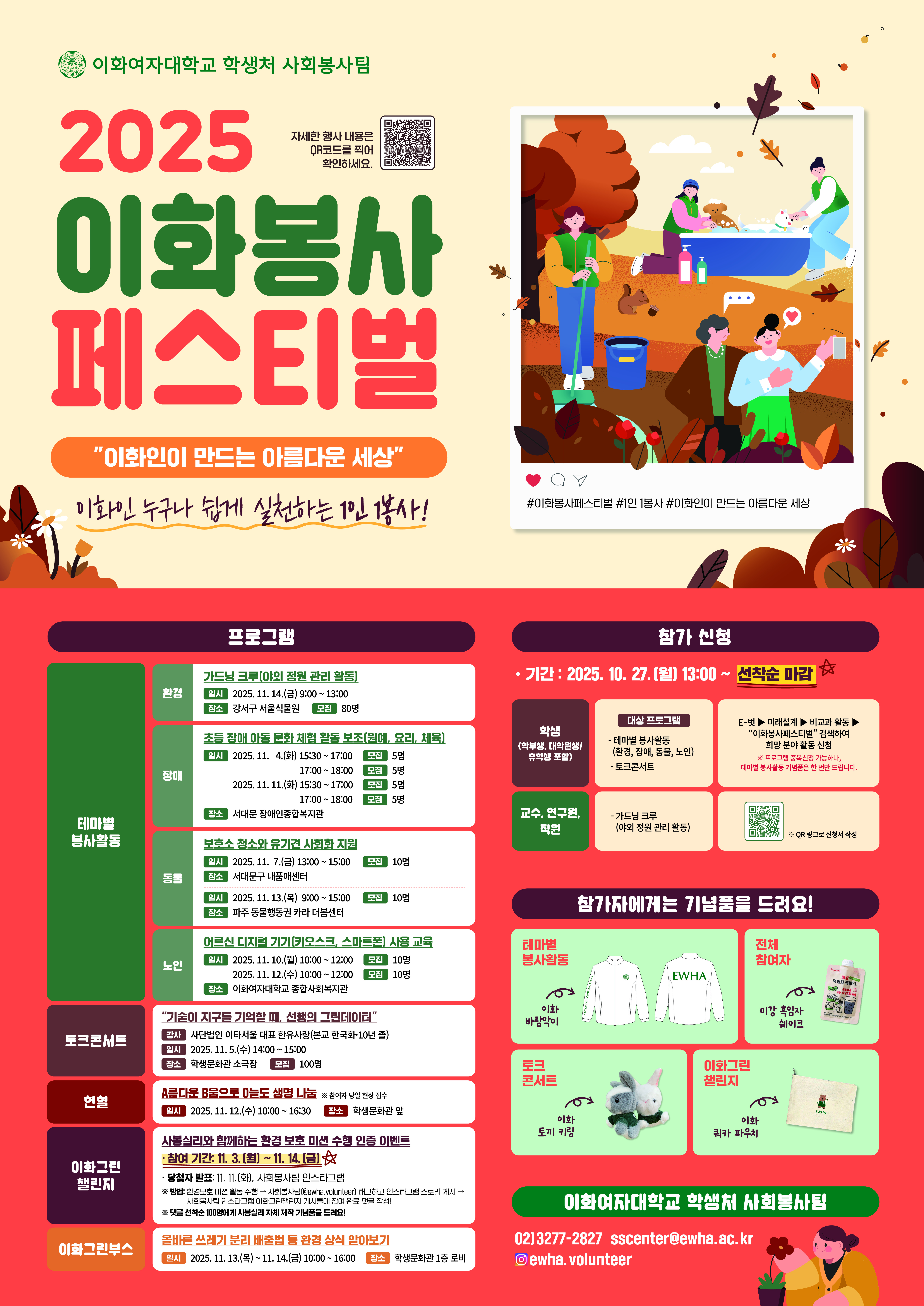 2025 이화봉사페스티벌 '이화인이 만드는 아름다운 세상' 개최 안내
